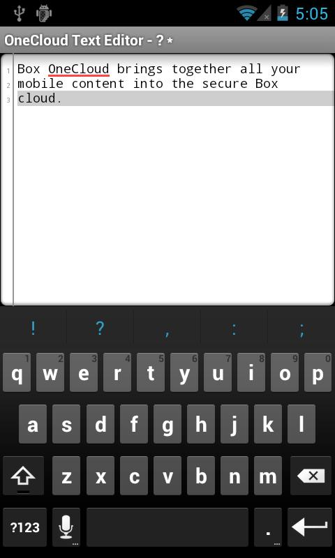 A text editor built for Box OneCloud. Installing this app will allow you to create and edit text files from the Box app. Your files are automatically secured to the Box cloud.