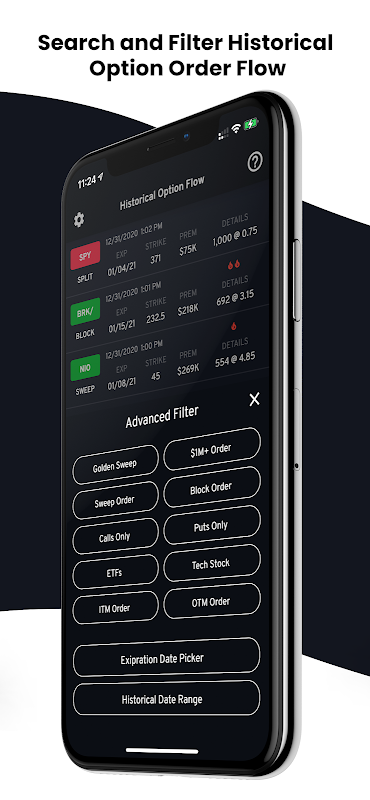 ऐप डाउनलोड करने या उपयोग करने पर, https://optionsflow.io/terms पर सूचीबद्ध शर्तें स्वचालित रूप से लागू होती हैं और ऐप का उपयोग करते समय इन शर्तों पर सहमति होनी चाहिए। ऑप्शंसफ़्लो पारंपरिक बाज़ार या सीमित आदेशों को प्रतिस्थापित नहीं करता है, हमारी सेवाओं का उपयोग केवल सूचनात्मक उद्देश्यों के लिए किया जाना चाहिए।