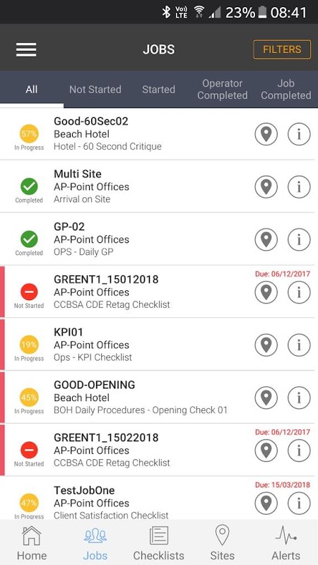 छवियों और चेक लिस्ट अपडेट का उपयोग कर काम प्रगति की सटीक लॉग वास्तविक समय में व्यवस्थापक पोर्टल खाते हैं। करने के लिए और साइट से सभी यात्रा प्रबंधन समय, तारीख और जीपीएस टिकटों के साथ प्रगति में सभी परियोजनाओं की एक समय दृश्य देने पर कब्जा कर लिया जा सकता है।