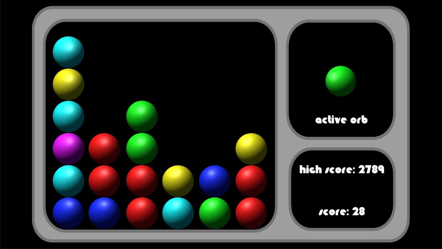 Orb Drop is a new kind of puzzle game. Different colored orbs will drop down and fill the game area. Destroy the orbs by tapping them, if they are next to an orb of the same color, then all adjacent orbs of the same color will also be destroyed. Try to keep your orbs from reaching the ceiling, if they do, then it is game over. Try to beat your best score.