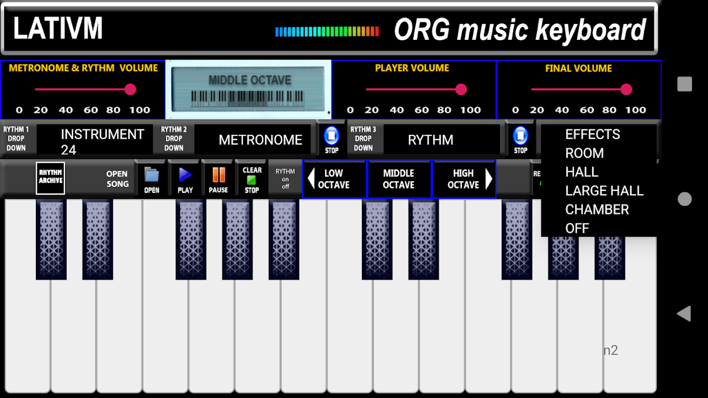 🎼 अपने पसंदीदा ट्रैक के साथ बजाएं: अपनी लाइब्रेरी के किसी भी गाने के साथ अपने बजाने के अनुभव को बेहतर बनाएं। अपने ट्रैक लोड करने और संगठन के किसी भी संगीत कीबोर्ड के उपकरण पर चलाने के लिए OPEN विकल्प का उपयोग करें।
