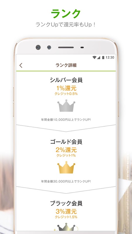 ランクに応じて、ポイント還元率がUPします。