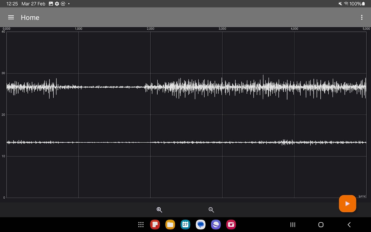 ओटीलाइट ऐप ओटी बायोएलेट्रोनिका उपकरणों के साथ वास्तविक समय ईएमजी सिग्नल प्रदर्शित करता है