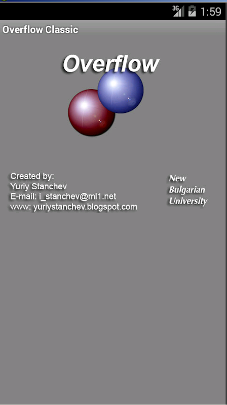 Overflow Classic is very simple but very addictive board game. The game is for two players who try to conquer all stones of the opposite player. The game was developed as master thesis in New Bulgarian University, Sofia, Bulgaria.