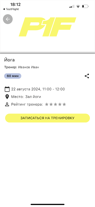 P1F क्लब का मोबाइल एप्लिकेशन (PRO1OOFIT)