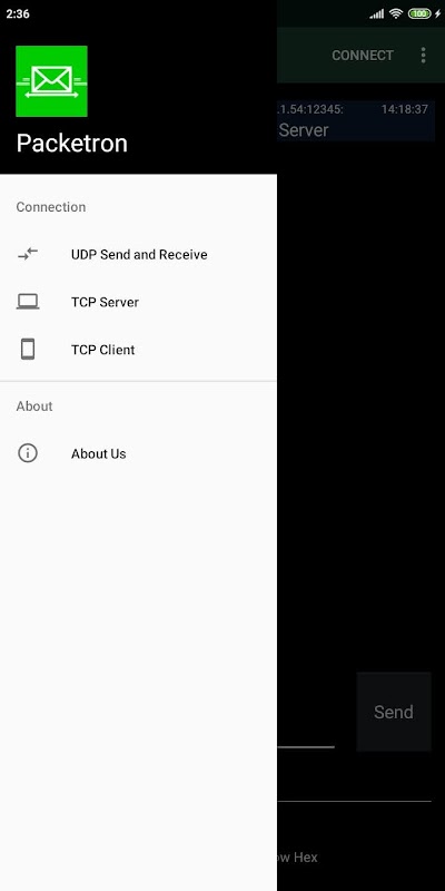 यह ऐप यूडीपी / टीसीपी परीक्षक के रूप में काम करता है, आप अपने कनेक्शन का परीक्षण करने के लिए यूडीपी या टीसीपी पर संवाद कर सकते हैं। यह सरल और आसान है और सभी आवश्यक कार्यक्षमता प्रदान करता है।