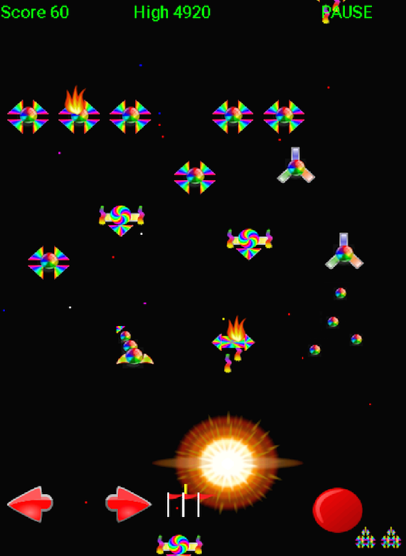 Invaders are all animated in different ways and fire a range of lasers, bullets and bombs. (All deadly)