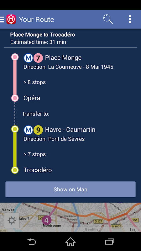 Tourists will appreciate route plan’s offline navigation system that allows the app to be used without requiring an internet connection. Those more familiar with Paris will be sure to never get lost when they use Route Plan’s street address finder and save their favorite places and metro stations. Additionally, Route Plan is location aware. It uses the GPS to find the route from the metro station nearest to your current location to any other station, point of interest or saved location. And since the metro lines and stations are integrated directly onto a Paris map, it’s easy to see which Metro, RER, or tram station is near any address or point of interest.