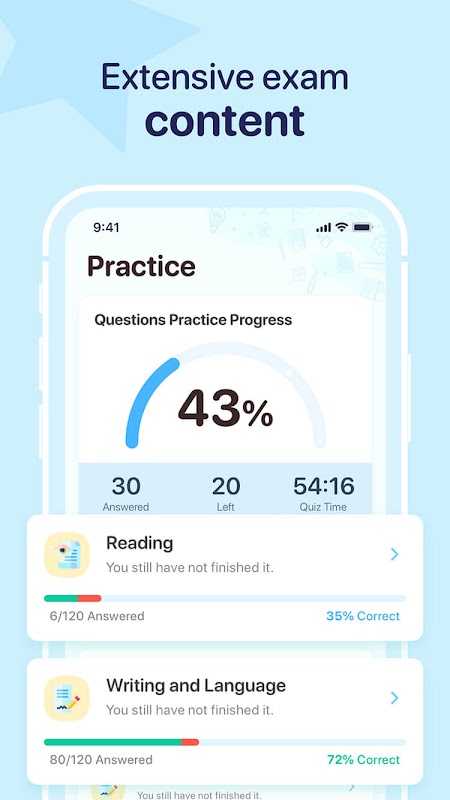 पास परीक्षा: SAT® परीक्षा तैयारी 2025 में, परीक्षण विशेषज्ञों द्वारा बड़ी संख्या में प्रश्न तैयार किए गए हैं जो आधिकारिक परीक्षण आवश्यकताओं के दायरे को कवर करते हैं। परीक्षा आवश्यकताओं के अनुसार, SAT को सफलतापूर्वक उत्तीर्ण करने के लिए आपको सभी विषयों में महारत हासिल करनी होगी।