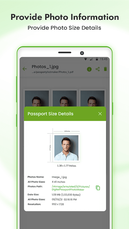 आपके लिए पासपोर्ट साइज फोटो क्रिएटर आपकी फोटो तक पहुंचना और संपादित करना आसान है या वह फोटो जो आपके पास प्रिंट करने के लिए पासपोर्ट आवश्यक फोटो साइज के लिए पहले से ही है। आसान और उपयोग में आसान पासपोर्ट फोटो मेकर। ऐप सिर्फ पासपोर्ट आकार के फोटो के लिए नहीं है, बल्कि आप अपनी इच्छानुसार किसी भी आईडी कार्ड के फोटो प्राप्त कर सकते हैं। ऐप फोटो कंप्रेसर नहीं है बल्कि आकार में छवि प्राप्त करने और प्रिंट आउट लेने के लिए उन्हें सिंगल शीट पर रखने के लिए है।