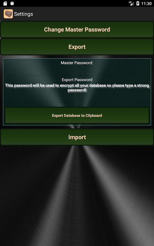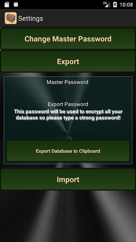 - सभी expoerted पाठ एन्क्रिप्टेड और अपनी पसंद का एक अतिरिक्त निर्यात पासवर्ड से सुरक्षित कर दिया जाएगा।