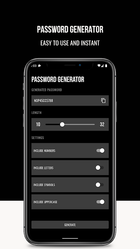 एक बार जब आपने तय कर लिया कि पासवर्ड कैसे होना चाहिए, तो आपको बस जनरेट बटन पर क्लिक करना है और बाकी काम हमारे आवेदन द्वारा किया जाएगा।