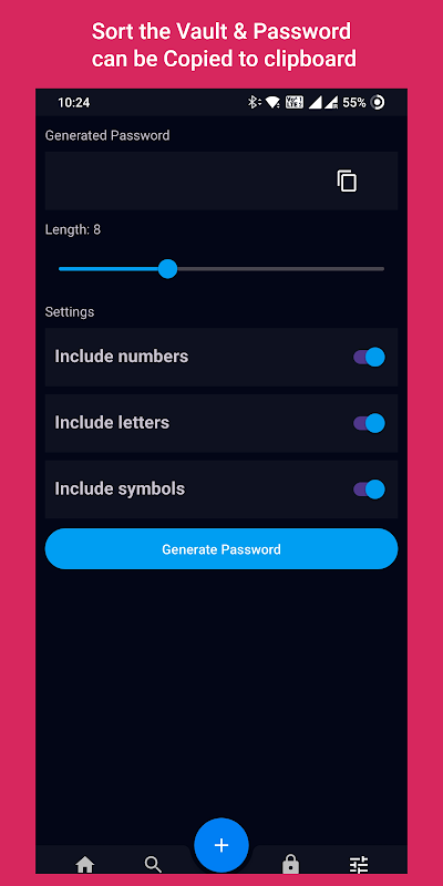 🔐 पासवर्ड जेनरेटर: जटिलता और लंबाई के लिए अनुकूलन योग्य सेटिंग्स के साथ अपने खातों के लिए मजबूत और अद्वितीय पासवर्ड बनाएं।