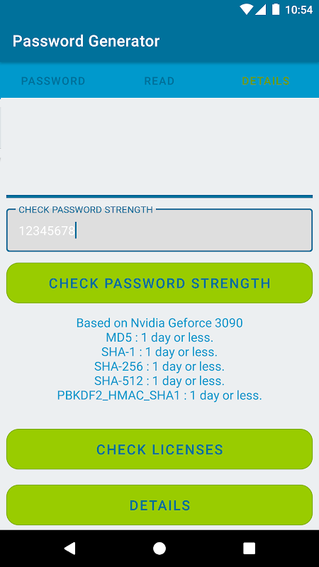 पासवर्ड जेनरेटर ऐप 8 से 64 के बीच पासवर्ड जेनरेट करता है।