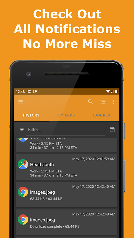 यह ऐप स्टेटस बार में दिखाया गया नोटिफिकेशन इतिहास रिकॉर्ड करता है।