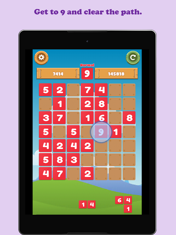 इस संख्या पहेली खेल में, उद्देश्य स्क्रीन के तल पर दिए गए नंबर समूहों का उपयोग 9 के पथ स्थापित करना है।