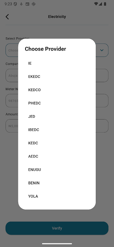 बिजली के बिलों का भुगतान करें (PHCN, IKEDC, आदि)।