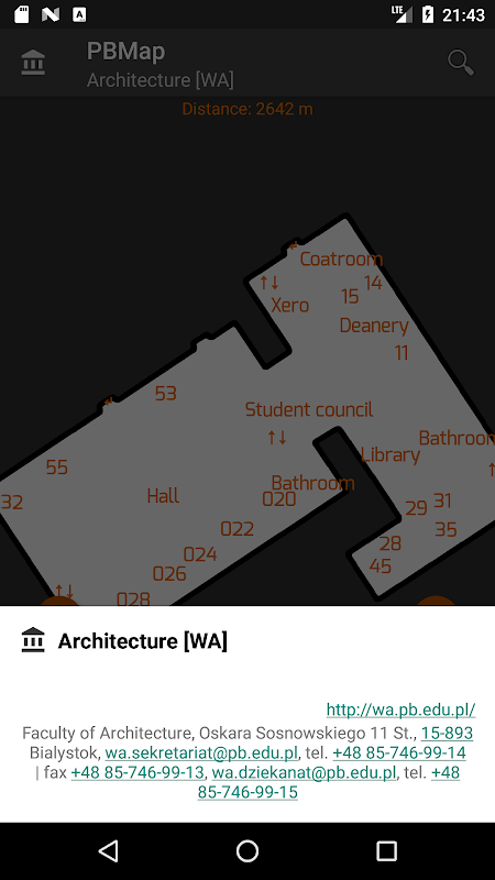 PBMap is an interactive, offline map of the Bialystok University of Technology designed in order to facilitate navigation and locating objects on polytechnic. PBMap does not require an internet connection.