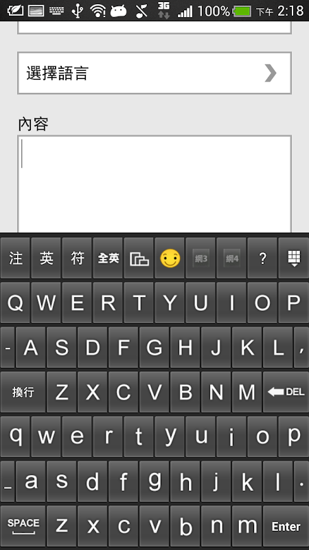 8.開啟手機任一輸入功能(例如:簡訊或是通訊錄)。