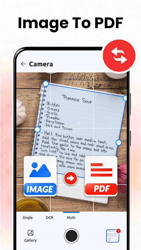 ✔ सटीक इमेज-से-PDF कन्वर्ज़न की सुविधा देता है