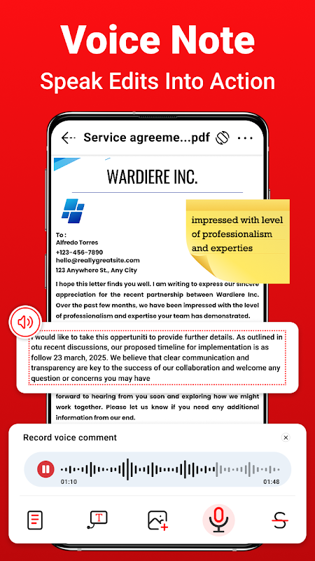 अपने नोट्स बोलें, टाइपिंग छोड़ें। किसी भी PDF में वॉयस कमेंट रिकॉर्ड करें और अटैच करें। त्वरित फ़ीडबैक, रिमाइंडर या अध्ययन सहायता के लिए बढ़िया- बस टैप करें, बात करें और सेव करें।