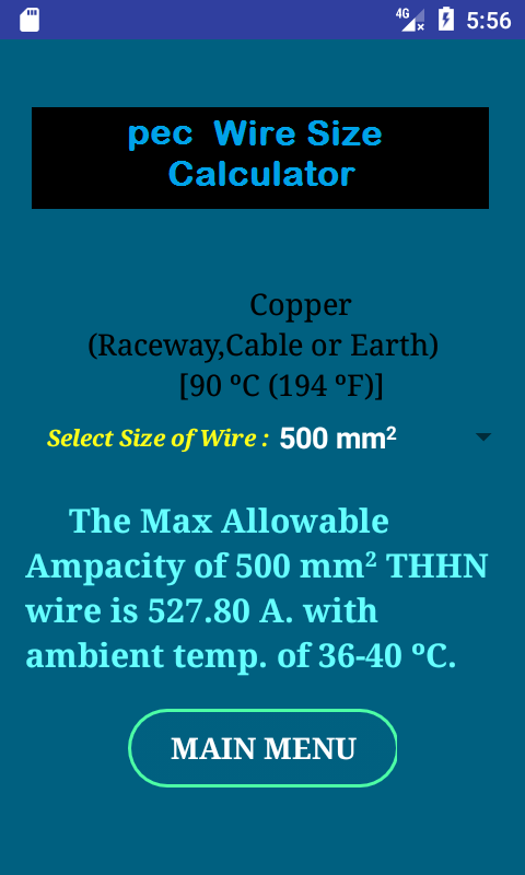 PEC Conductor Size Calculator 1.0.18