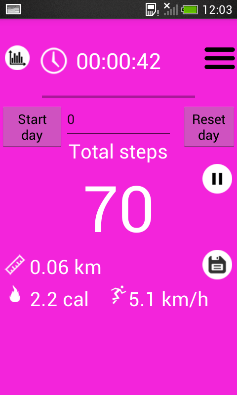 pedometer के अनुप्रयोग का उपयोग करने के लिए बहुत आसान है। आप "दिन की शुरुआत" बटन पुश के बाद, आप एप्लिकेशन को कम से कम इसे अपनी जेब में डाल दिया है या आप हमेशा करते हैं के रूप में अपने फोन या गोली का उपयोग जारी रख सकते हैं।