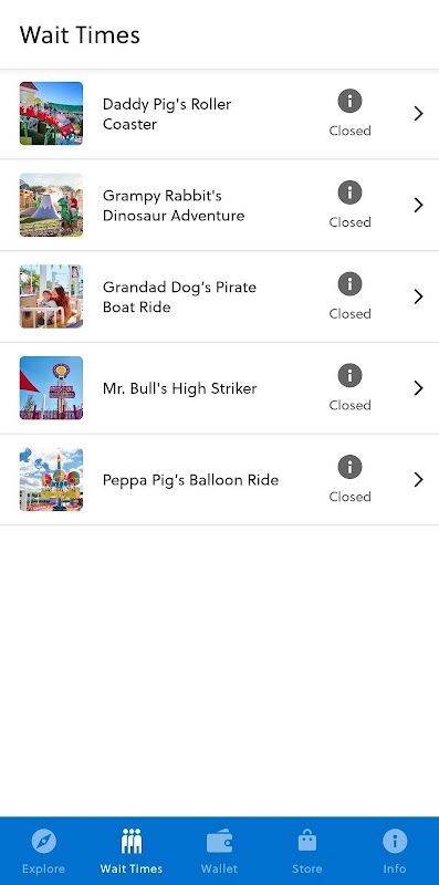 - अपने दिन की योजना बनाएं: आपके आने से पहले आपके परिवार को आपकी यात्रा के लिए आवश्यक सभी जानकारी! अपने अनूठे साहसिक कार्य के लिए सर्वोत्तम सवारी और आकर्षण निर्धारित करने के लिए ऐप को अपनी पार्टी के बारे में बताएं। अपने छोटे पिग्गियों के पसंदीदा पर नज़र रखें और जाते ही उन्हें अपनी सूची से हटा दें!