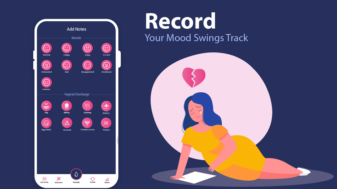 period calendar and menstrual flow, while analyzing your past period cycle and predict next future period cycle for women birth control tracker.