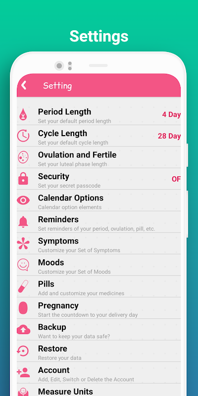 - Free backup of your menstrual cycle data, when you lose or change your phone all your cycle notes and period history will be synced to new phone