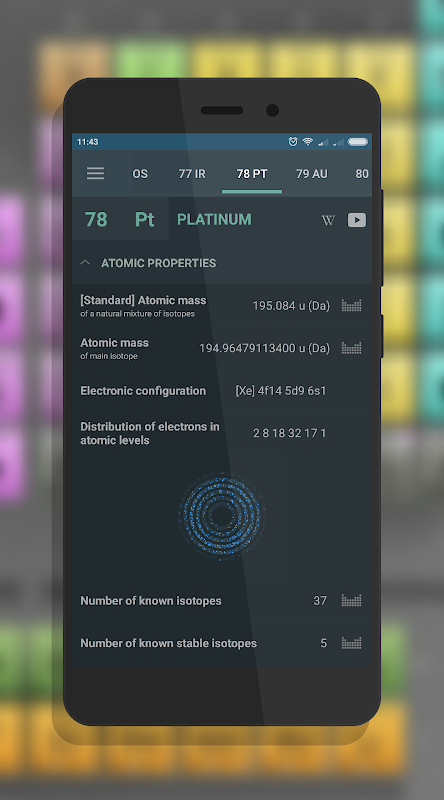 तत्व कार्ड -> परमाणु गुण -> परमाणु मॉडल -> नल मॉडल बदलने के लिए / बंद, लंबे समय प्रेस शुरू करने के लिए।
