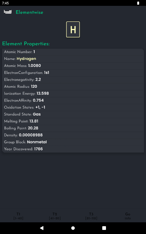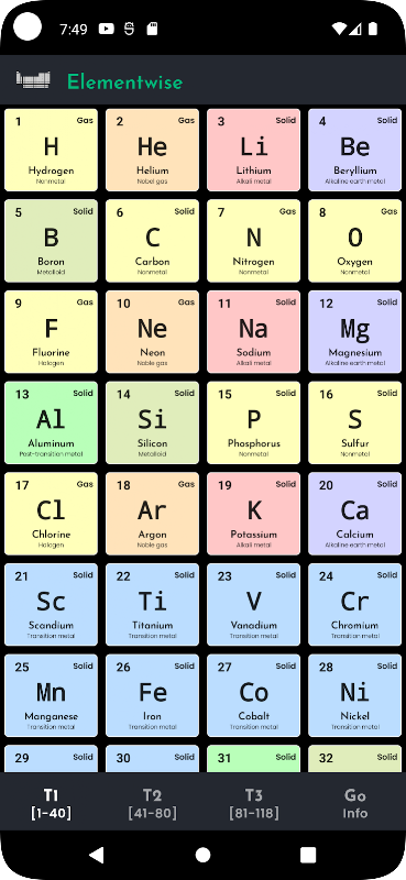 एलिमेंटवाइज पेज व्यू पीरियोडिक टेबल पर एक सरल ऐप है।