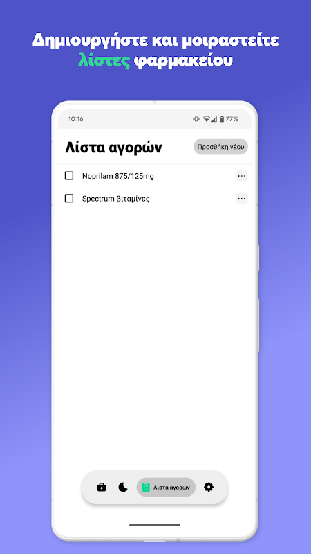 ・फार्मेसी वस्तुओं की एक सूची बनाने और इसे दूसरों के साथ साझा करने की क्षमता