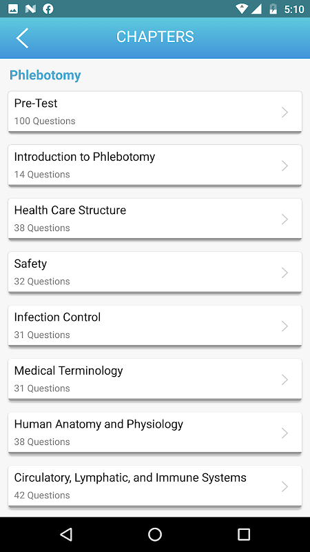Prepare for phlebotomy certification and licensure exam success with Phlebotomy Exam Prep app. This app has more than 1000 questions. A pretest provides an assessment of strengths and weaknesses, and practice certification exams tests your knowledge of necessary information. The questions are from the book Complete Phlebotomy Exam Review, 2nd Edition (ISBN: 978-0-323-23911-0). Organized into chapters that correlate with the trusted textbook by Warekois and Robinson, each chapter includes multiple-choice questions, each with an answer and a rationale. This is the tool that you need to prepare for the examination with confidence.