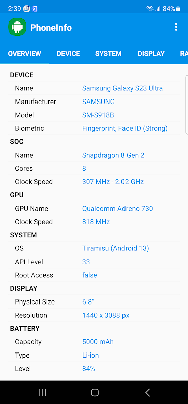 PhoneInfo एक एप्लिकेशन है जो व्यापक डिवाइस जानकारी प्रदान करता है, जिसमें शामिल हैं: