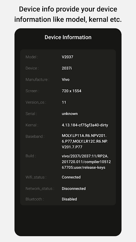 7) डिवाइस और सिस्टम की जानकारी: डिवाइस इंफो ऐप आपको सीपीयू, जीपीयू, बैटरी, स्क्रीन, फोन मॉडल, डिवाइस का नाम, निर्माण, एंड्रॉइड वर्जन, मेमोरी, सेंसर और सभी सिस्टम जानकारी जैसे सभी आवश्यक विवरण जानने देता है।