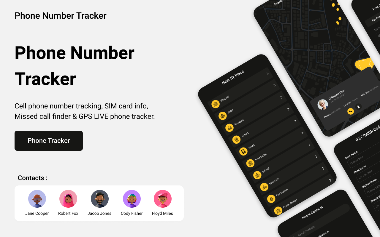फ़ोन नंबर ट्रैकर एक छोटा टूल है जिसके द्वारा आप कॉलर सेल फ़ोन नंबर के साथ उस वर्तमान समय के सभी वर्तमान स्थानों को आसानी से ट्रैक कर सकते हैं। यह एक बहुत ही सरल और अनूठा ऐप है जो आपको GPS MAP और टेक्स्ट फॉर्मेट में अपने स्वयं के लाइव स्थानों को ट्रैक करने में मदद करता है। लाइव मैप ऐप पर फोन नंबर ट्रैकर आपको मैप पर लोकेट करने के लिए नंबर सर्च करने की सुविधा देता है। ऐप एपिलेयर से एपीआई सर्वर का उपयोग करके काम करता है जिससे 200+ देशों को जानकारी प्राप्त करने की अनुमति मिलती है।