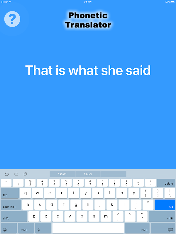 टाइप या पेस्ट अपने शब्दों या वाक्यांशों में और नल "जाना" "नमस्ते" "होटल ECHO लीमा ऑस्कर" में बदलने के लिए!