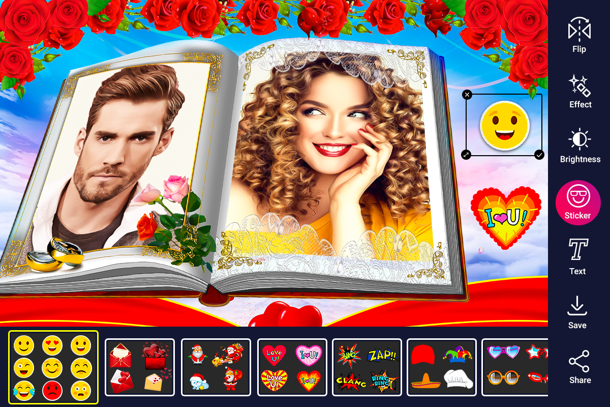 - Decorate with beautiful dual photobook, love and flower stickers.