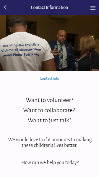 The Photo Patch Mobile App helps Children communicate with their incarcerated parent. Every month, we ask children to upload letters and pictures that they would like to send to their parents. Photo Patch prints, packages, ships the mail on their behalf. We ensure: Quality photos and letters are printed, Photos and letters are placed in prison-appropriate packaging, Envelopes have valid shipping and return addresses, Envelopes have sufficient amount of postage attached, The mail is delivered in a timely fashion, Children are notified that their mail has been printed, packaged and shipped.