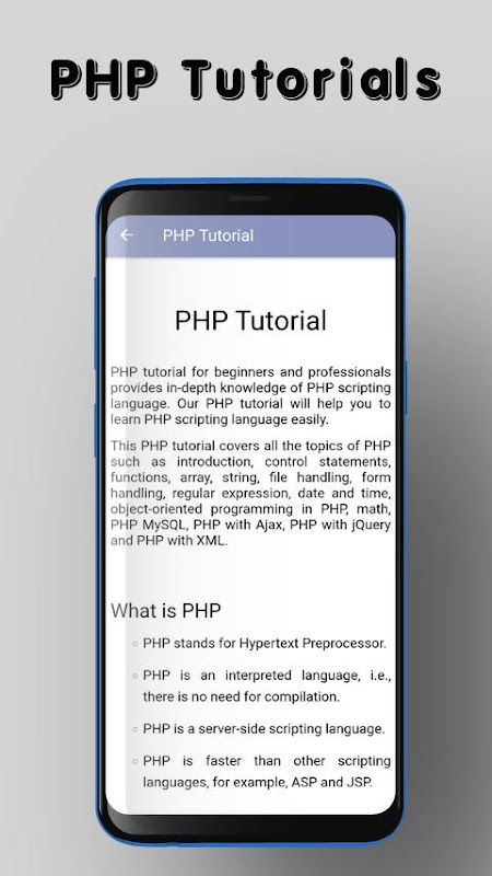 In "PHP Tutorial - Offline Learning" app PHP tutorial for beginners and professionals provides in-depth knowledge of PHP scripting language. "PHP Tutorial - Offline Learning" in PHP tutorial will help you to learn PHP scripting language easily.