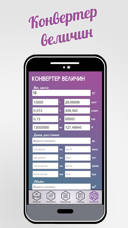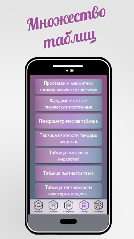 - Более 250 формул по физике;