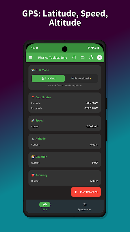 अपने स्मार्टफ़ोन के आंतरिक सेंसरों से डेटा रिकॉर्ड, डिस्प्ले और निर्यात करें।