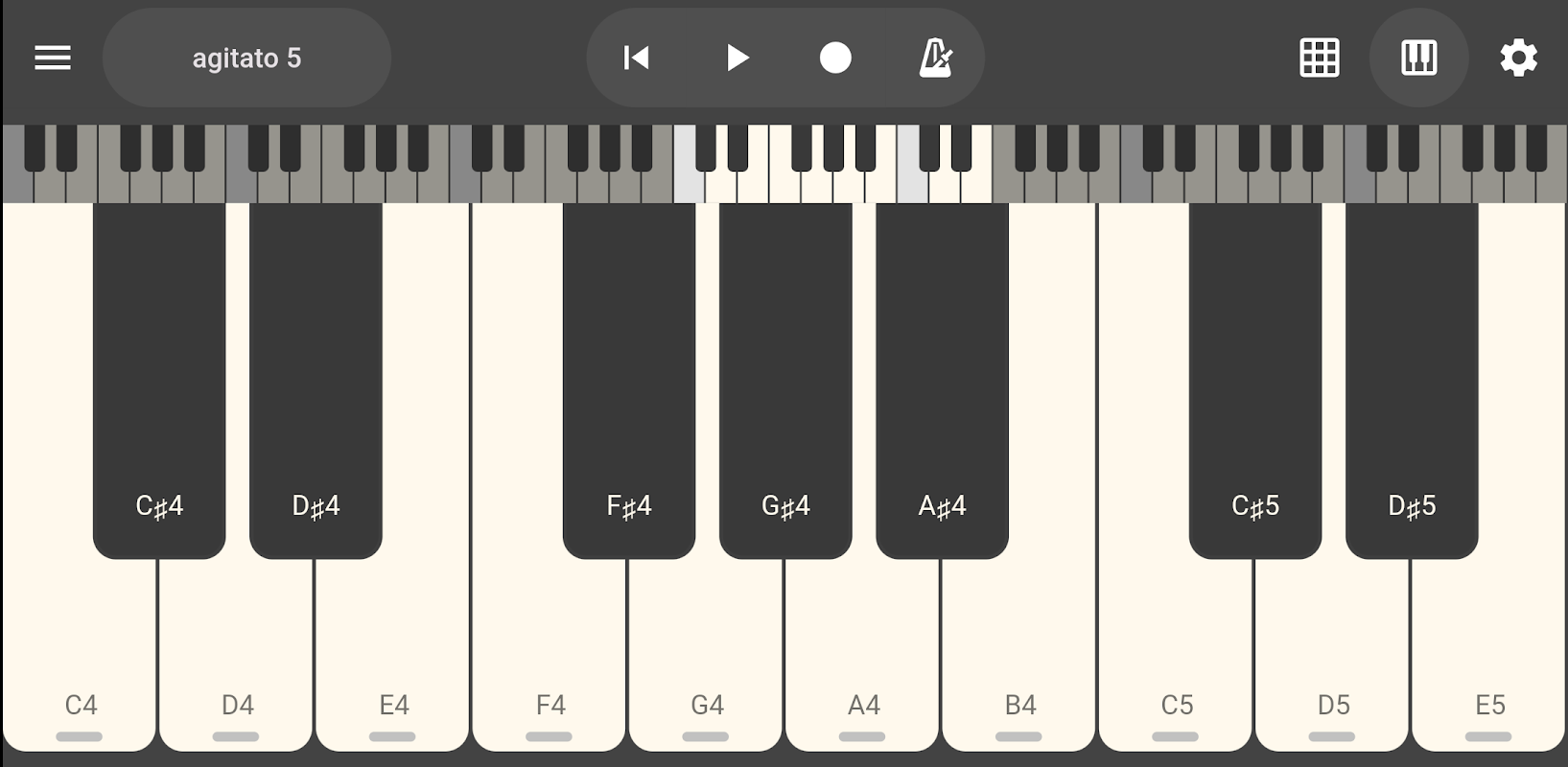 • चयनित संगीत स्केल चलाने के लिए पियानो पैड.
