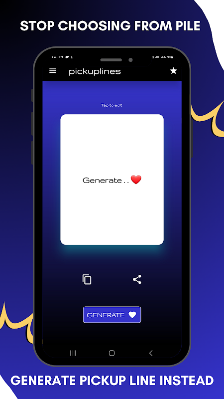 बस अनुकूलन फ़ील्ड में अपने साथी का नाम दर्ज करें, जनरेट बटन दबाएं, और देखें कि ऐप आपके लिए तैयार की गई लजीज पिकअप लाइनों का एक संग्रह तैयार करता है। मधुर और मनमोहक से लेकर आनंददायक मटमैलेपन तक, ये पंक्तियाँ मूड को हल्का करने और आपके साथी को विशेष महसूस कराने के लिए डिज़ाइन की गई हैं।