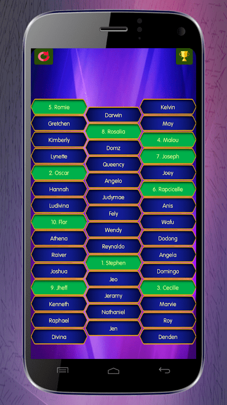 सामान्य मोड में, ऐप बेतरतीब ढंग से एक समूह से एक नाम चुनता है। चुने गए नाम फर्स्ट से लास्ट तक रैंक होंगे।