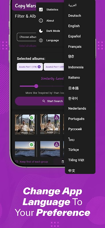 एलबम चुनना आसान – एक या अधिक एलबम चुनें जिन्हें आप स्कैन करना चाहते हैं। PicPurge विभिन्न एलबमों में मौजूद समान फ़ोटो को ट्रांजिटिव रूप से समूहित करता है, जिससे कोई डुप्लिकेट छूटता नहीं है।