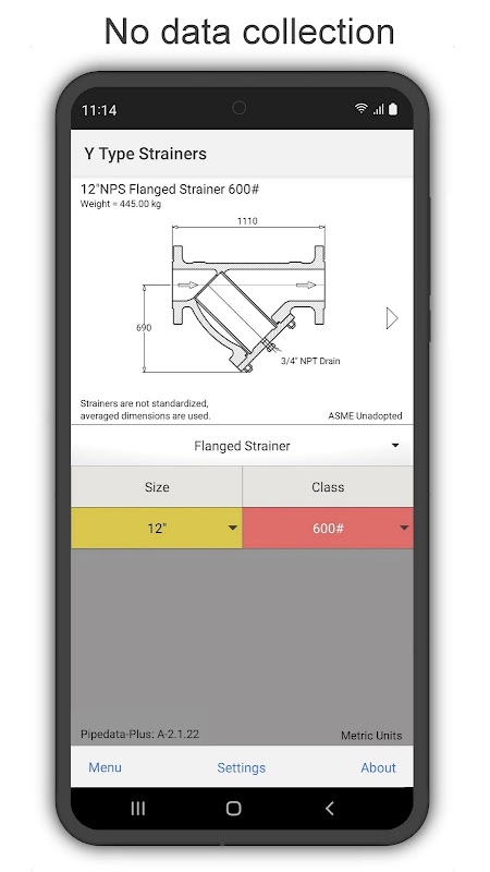 नवीनतम एएसएमई पाइपिंग आयामी विनिर्देशों के आधार पर यह मेट्रिक, यू.एस. कस्टमरी यूनिट्स और इंच फ्रेक्शन, एनपीएस और डीएन पाइप आकार दिखाता है और इसमें ऑडिट वाल्व वजन, निकला हुआ किनारा वजन, पाइप वजन और सभी पाइपिंग घटक वजन शामिल हैं।