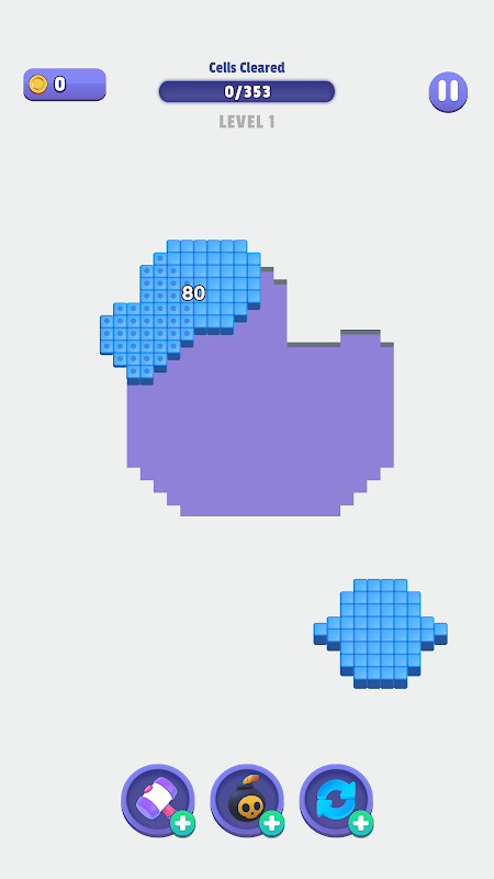 80 बबल मैच करें और आर्टवर्क दिखाने के लिए बोर्ड साफ़ करें