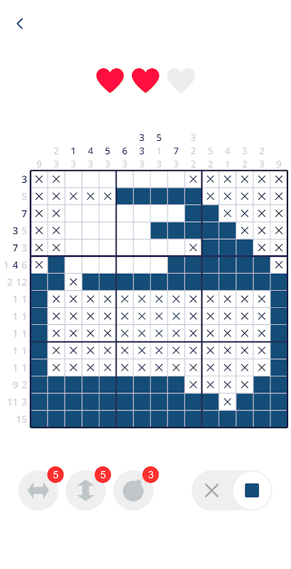 · संख्याओं के साथ सुरागों का पालन करें यह समझने के लिए कि नॉनोग्राम को हल करने के लिए कौन से सेल रंगीन होने चाहिए या खाली छोड़े जाने चाहिए।